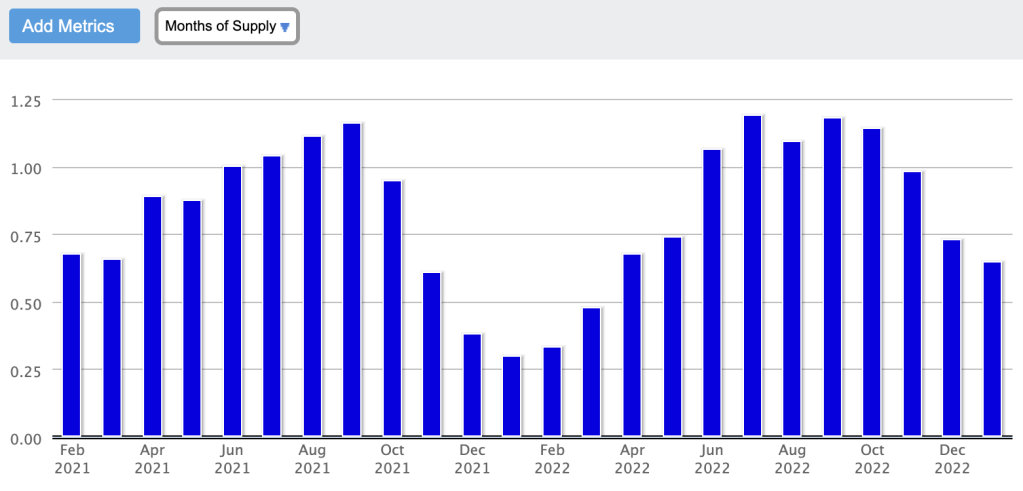 And just like that we are through the beginning of 2023 and the spring market begins. You heard that right – we are already seeing bidding wars start in many pockets of the tri-state area. To begin, I want to cover a little bit about the below graphic. The national media frenzy made it sound like with the rise of interest rates at the end of 2022 housing supply would be through the roof and values would drop significantly. THIS IS NOT THE CASE. The below graph shows months of supply in Fairfax County. As you can see, the number of homes currently on the market is pretty similar to early 2021 – the truth is we are still very much in a sellers’ market with only .65 months of supply (a balanced market is usually considered around 5 months of supply).